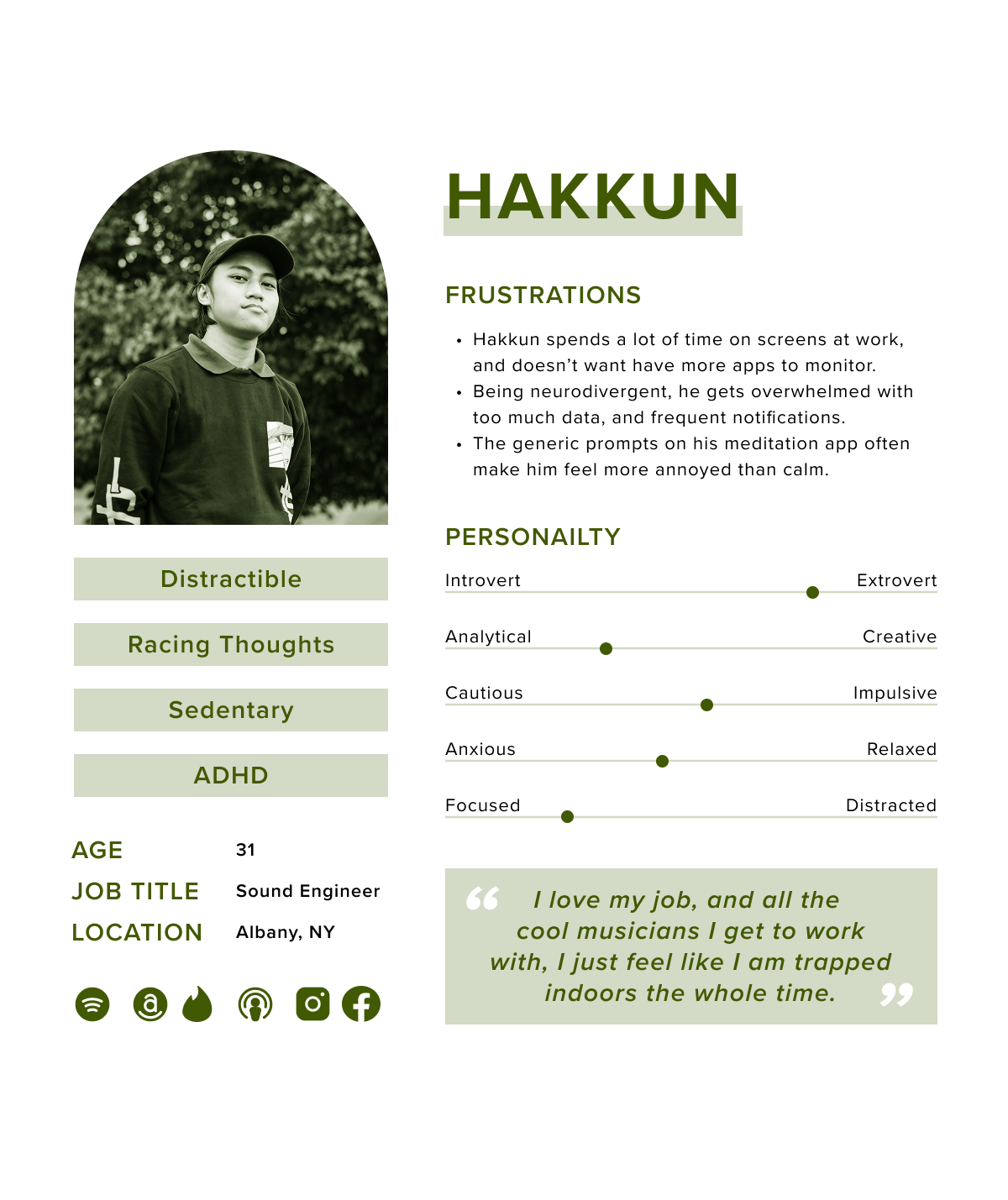 Based on user interviews with 10 participants, I created three personas to guide the product's UI design, user journeys, and feature development.