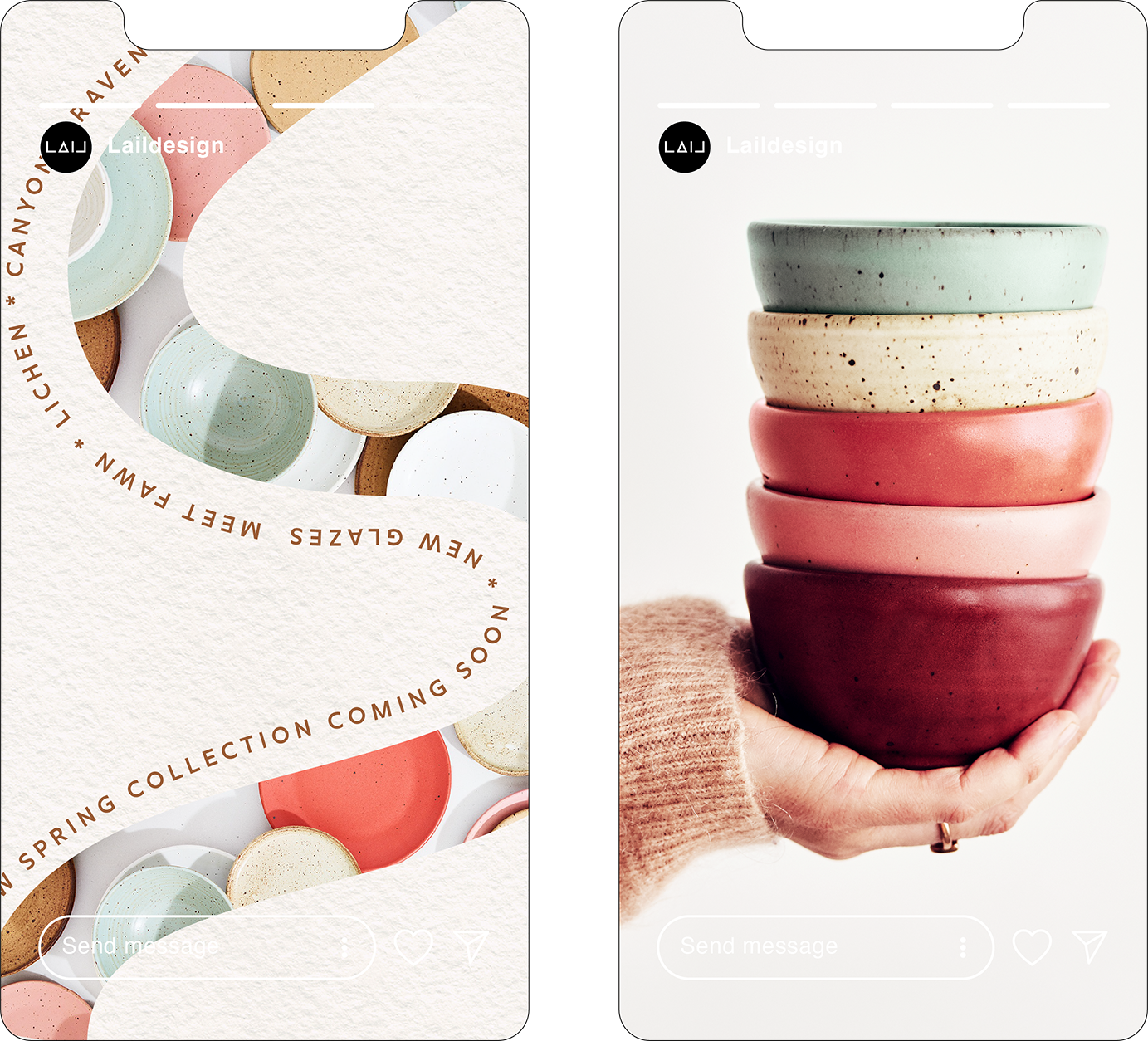 As Cofounder and Art Director of Lail Design, I guided the brand's evolution through deliberate visual storytelling—translating form, color, and texture into a distinctive identity. I crafted seasonal color palettes and directed all product photography, employing flatlay composition and chromatic contrast to create compelling vignettes for digital channels. My work extended from foundational brand elements—logo design and the signature clay stamp—to the nuanced integration of glaze texture throughout our graphic language, ensuring coherence across every customer touchpoint